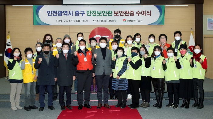 인천 중구(구청장 김정헌)는 지난 6일 안전보안관 교육을 이수한 중구 안전보안관 23명에 대해 안전보안관증 수여식을 개최했다.