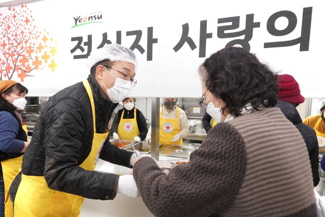 이재호 연수구청장은 지난 19일 설날을 앞두고 지역 내 취약계층 어르신의 따뜻한 명절을 기원하며 연수3동에 위치한 사랑의 무료 급식소를 방문해 자원봉사자를 격려하고 급식 봉사에 함께 참여했다.
