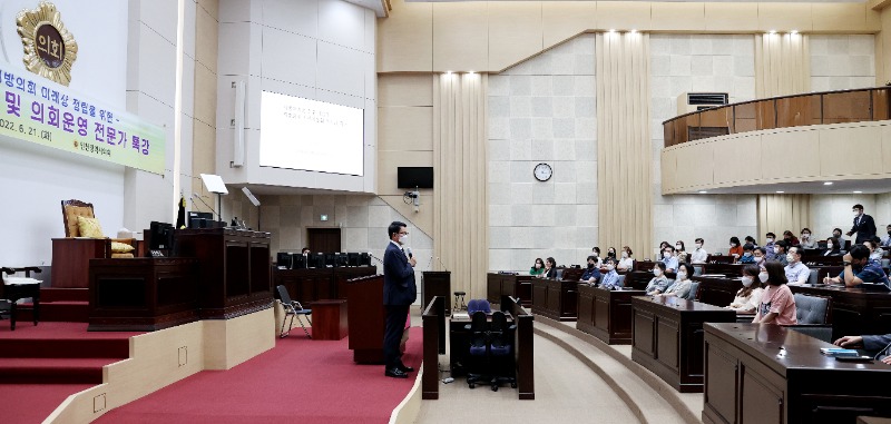 인천시의회는 최근 의회 본회의장에서 전직원을 대상으로 창원대학교 송광태 행정학과 교수를 초청 지방자치법 , ‘ 전부개정과 지방의회 사무직원의 역할과 기대' 라는 주제로 강의를 진행했다고 22일 밝혔다