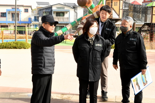 유천호 군수는 공원 구석구석을 살펴보며 공원 내 시설물, 수목식재 등 시공 상태를 확인하고, 공원 개장 시 주민 불편이 예상되는 사항을 보완해 줄 것을 당부했다.