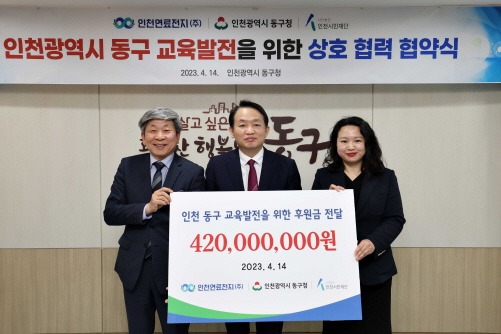 한편 이번 인천연료전지(주)의 교육발전지원금 4억 2,000만원은 동구 수소연료전지발전소 민·관 합의에 따라 동구 관내 교육 발전을 도모하기 위해 지원하기로 한 9억원 중에서 기탁하는 지원금이다.