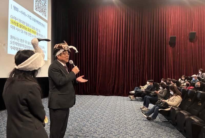인천시교육청은 영화공간주안에서 새만금 갯벌에 관한 다큐멘터리영화 ‘수라’ 시사회를 14일 열고 섬‧바다교사 아카데미를 시작했다.