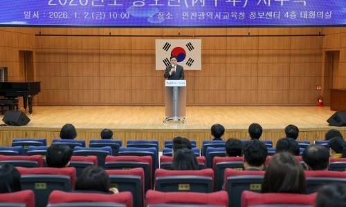 ▲ [2026 인천시교육청 시무식]인천시교육청은 2일 오전 10시 시교육청 대회의실에서 전 직원이 참석한 가운데 시무식을 열었다.도성훈 교육감은 신년사를 통해 “인천교육은 학생, 교직원, 학부모 모두 서 있는 위치가 다르고 생각도 다를 수 있지만 인천교육을 위한 마음은 모두 같을 것”이라며 “새해에는 존이구동(尊異求同)의 마음으로 서로의 ...