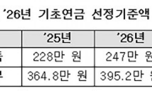 새해부터 노인 가구의 월 소득 인정액이 단독가구는 247만 원 이하, 부부가구는 월 395만 2000원 이하이면 기초연금을 받을 수 있다.&nb...