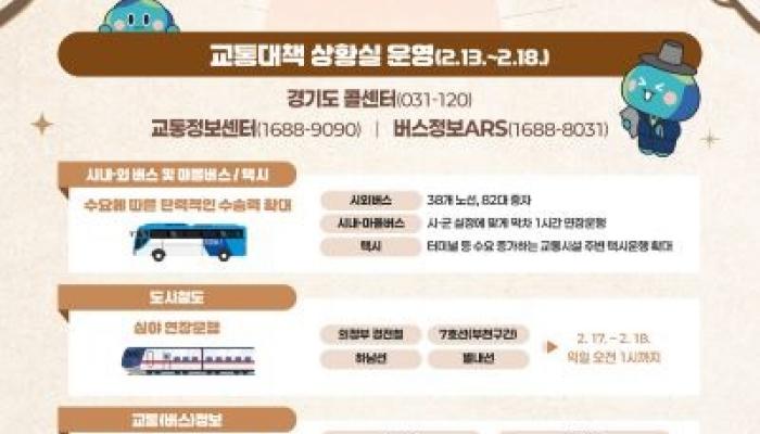 ▲ [특별교통대책 인포그래픽/경기도 제공]경기도가 안전하고 편한 설 귀성길 조성을 위해 13일부터 18일까지 6일간을 ‘2026년도 설 연휴 특...