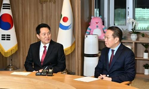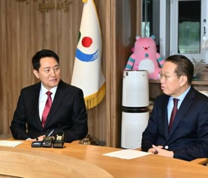 ▲ [오세훈 서울시장이 6일(금) 오전 권영세 국회의원과 만나 정부의 1·29 대책에 따른 용산국제업무지구 개발 방향에 대해 논의하고 있다/ 서...