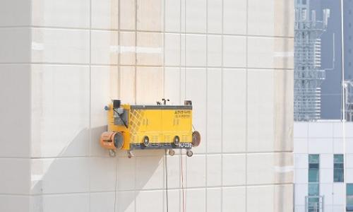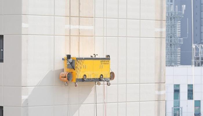 ▲ [사진=외벽도장로봇/현대엔지니어링 제공]현대엔지니어링(대표이사 주우정)과 도장전문업체 제이투이앤씨가 공동 개발한 ‘외벽도장로봇’ 기술이 국토...