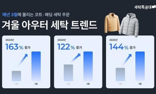 모바일 세탁 서비스 ‘세탁특공대’를 운영하는 워시스왓(대표 남궁진아·예상욱)이 최근 3년간 겨울 의류 세탁 데이터를 분석한 ‘겨울 아우터 세탁 트렌드’를 공개했다.▲ 세탁특공대 ‘겨울 아우터 세탁 트렌드’ 인포그래픽세탁특공대가 집계한 데이터에 따르면 2023년부터 2025년까지 접수된 겨울 아우터 세탁 주문량은 총 146만6460...