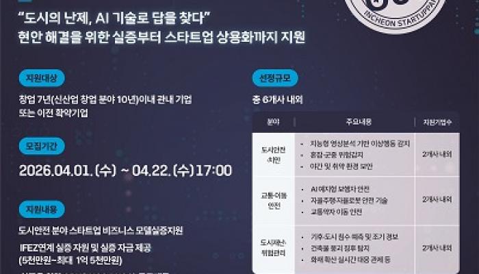인천경제청이 도시 현장에서 AI 기술을 검증하는 ‘TRYOUT AI 실증사업’ 참여 스타트업을 공개 모집한다.▲ 포스터이 사업은 단순 기술개발 ...