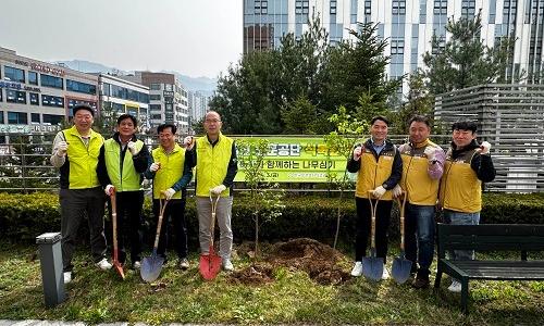 한국보훈복지의료공단(이사장 윤종진)은 제81회 식목일을 맞아 3일(금) 원주혁신도시 본사 사옥에서 윤종진 이사장과 노동조합 대표를 비롯한 임직원이 참여하는 나무심기 행사를 개최했다고 밝혔다.▲ (윤종진 이사장(왼쪽 네 번째)과 노동조합 대표가 식목일 기념식수를 심은 뒤 기념사진을 찍고 있다/한국보훈복지의료공단 제공)이번 행사는 탄소중립 실...