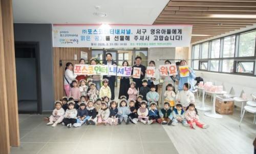 인천 인천 서구청장 강범석은 지난 31일 포레나루원시티 아파트 커뮤니티센터에서 ㈜포스코인터내셔널(대표이사 이계인)으로부터 보육시설 지원 물품(공...