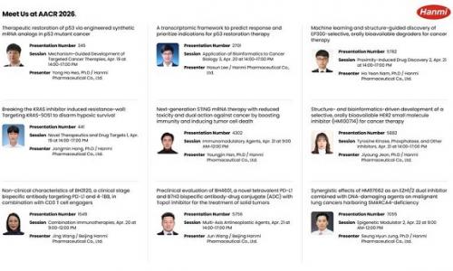 한미약품은 오는 4월 17일부터 22일까지(현지시각) 미국 샌디에이고에서 열리는 미국암연구학회(AACR 2026)에 참가해 국내 제약바이오 업체 중 최다 건수인 9건의 비임상 연구 결과를 공개한다고 6일 밝혔다.▲ 한미약품이 AACR 2026에서 발표하는 주요 연구 포스터 초록 소개(출처: 한미약품 홈페이지)한미약품은 이번 AAC...