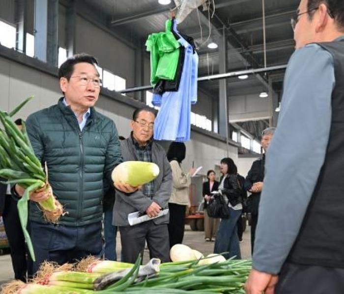 유정복 시장은 15일 오전 남동구 남촌농산물도매시장을 찾아 현장의 애로사항을 청취하고 농산물 수급 전반에 대해 점검했다.▲ (유정복 인천시장이 ...