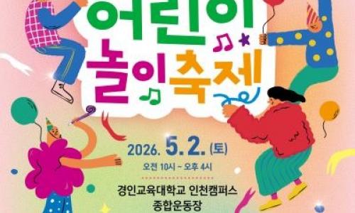인천시교육청이 5월 2일 경인교육대학교 인천캠퍼스에서 유·초등학생과 가족이 함께하는 ‘제3회 인천 어린이 놀이 축제’를 개최한다.‘오늘은 어린이가 주인공, 맘껏 놀아요. 준비~땅!’이라는 슬로건 아래 열리는 이번 축제는 놀자학교, 경인교대, 놀이교육 연구회 등이 참여해 과거·현재·미래 놀이를 아우르는 80여 개 체험 부스를 운영한다.가족이...