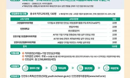 인천시가 청년의 취업역량을 강화하고 지역기업이 필요로 하는 실무형 인재를 양성하기 위해 ‘2026 인천 청년도약기지’ 사업 참여자 130명을 4월 15일부터 4월 29일까지 모집한다.▲ (청년도약기지 포스터)‘인천 청년도약기지’는 구직 청년에게 실무 중심의 직무교육과 기업 인턴십 기회를 제공하는 일경험 연계형 취업지원 사업으로, 취업에 필...