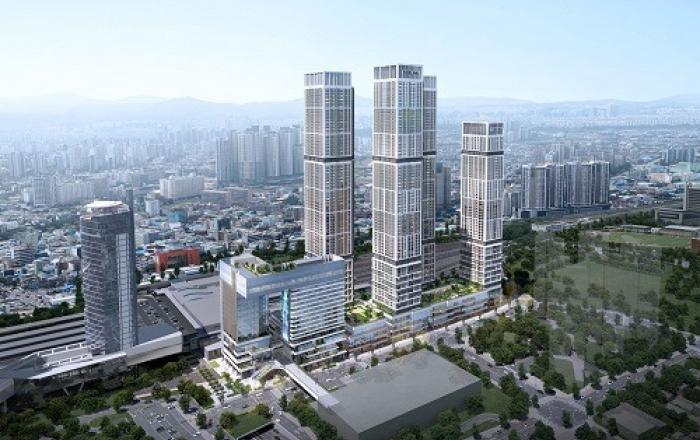 ▲ 대전역세권 복합2-1구역 개발사업 조감도㈜한화 건설부문과 대전시가 대전역세권 복합 2-1구역 성공 개발을 위해 공동 사업설명회를 개최하고 기업유치 업무협약(MOU)을 체결하는 등 협력관계를 강화해 나가고 있다.㈜한화 건설부문이 주관사로 있는 ㈜대전역세권개