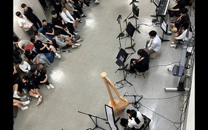 ▲ 가온 솔로이스츠, 경기문화재단의 2025 민간기업 참여 프로젝트 사업 참여온 솔로이스츠가 경기문화재단과 에이치에스효성첨단소재의 후원을 받아 경기도 내 장애인주간보호센터와 특수학교를 방문해 찾아가는 음악회를 진행했다. 가온 솔로이스츠는 장애 비장애 연주자들이