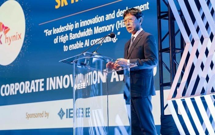 SK하이닉스는 24일(현지시간) 미국 뉴욕에서 열린 ‘2026 IEEE* 어워즈(Awards)’에서 기업혁신상(Corporate Innovation Award)을 수상했다고 26일 밝혔다.▲ (SK하이닉스 안현 개발총괄 사장(CDO)/SK하이닉스 제공)IEEE는 전기