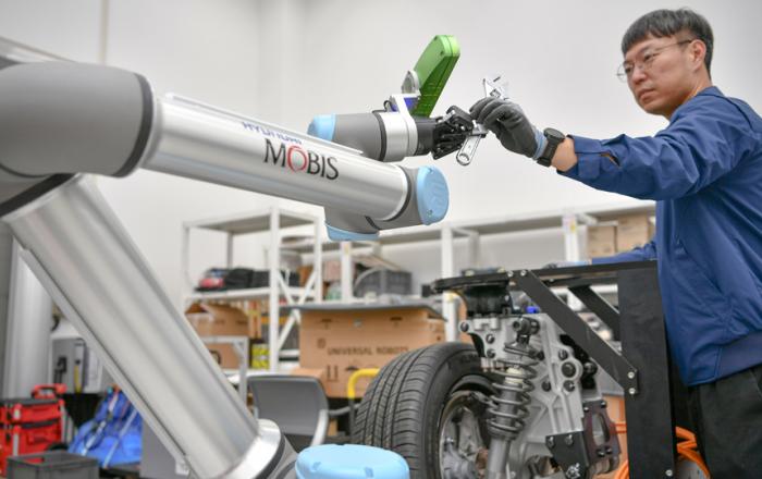 미래 스마트 모빌리티 솔루션 기업으로 거듭나고 있는 현대모비스가 일반 제조현장이나 스마트 팩토리 등에 활용할 수 있는 로봇을 선보인다. 인간과 로봇의 상호 작용을 통해 안전하게 협업하는 로봇 기술이다. 전동화, 자율주행 등 미래차 핵심 기술 역량을 강화하고 있는 현대모