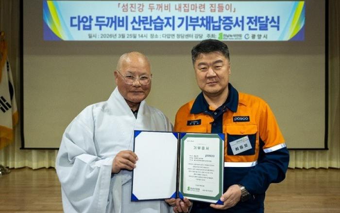 ▲시상식에서 3000만원의 시상금과 트로피를 받고 있는 변상일 9단(오른쪽),안윤효 안동시체육회장(왼쪽).김종우 기자.[안동=뉴스채널A] '변상일 9단'이 '안동시 백암배 바둑 오픈 최강전' 6번째 주인공이 됐다.4일 경상북도 안동시 백암선생 생가에서 열린 제6회 안동