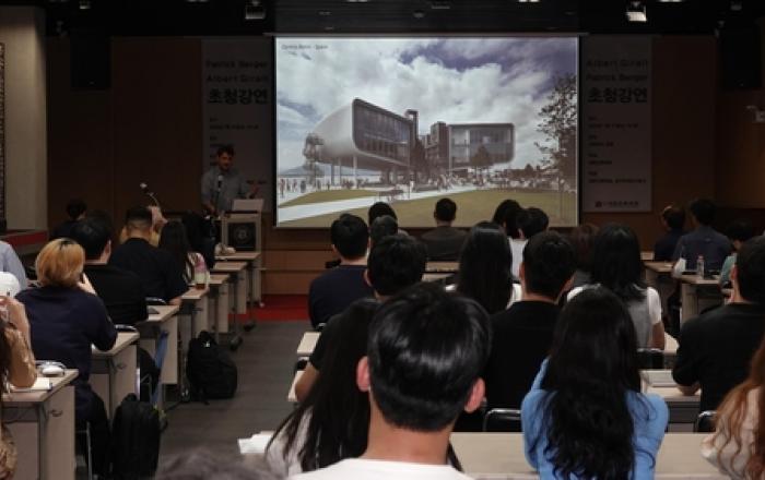 경기주택도시공사(GH)가 지난 27일 오후 대한건축학회 강당(서울 방배동)에서 해외 건축가 앨버트 지랄트(Albert Giralt)와 파트릭 베르제(Patrick Berger) 초청강연을 개최했다. 앨버트 지랄트는 렌조 피아노 건축사무소의 파트너로 세계적으로 권위