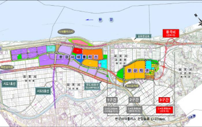 경기 김포시는 '한강시네폴리스 진입도로' 풍곡IC 구간에 대한 공사가 본격화됐다고 25일 밝혔다. '한강시네폴리스 진입도로'는 김포한강로 풍곡리(풍곡IC, 신설)지점에서 시작해 향산리, 걸포동 일원에 조성 중인 한강시네폴리스 산업단지(1,116,570㎡)를 잇는 총