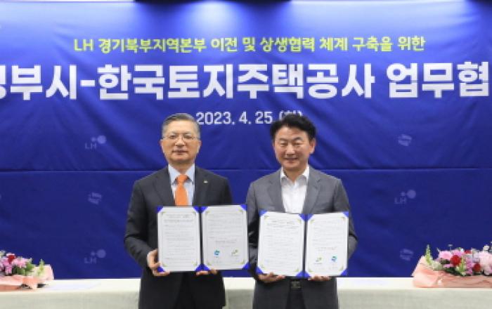 LH는 25일, 의정부시청에서 의정부와 'LH-의정부시 간 상생협력체계 구축을 위한 업무협약'을 체결했다고 밝혔다. 이번 협약은 의정부 지역 발전 및 경제 활성화, 지역주민 삶의 질 개선 등을 위해 협업할 수 있는 기반을 구축하기 위해 마련됐으며, 협약식에는 이한준