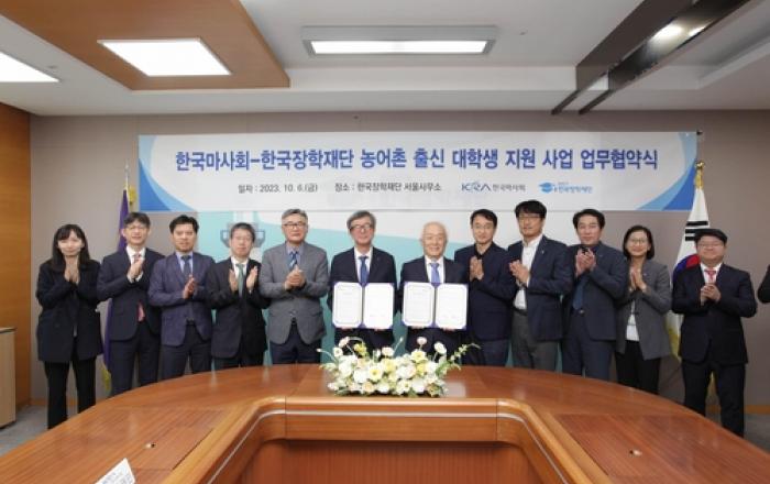 한국마사회와 한국장학재단은 10월 6일(금) 한국장학재단 서울사무소에서 농어촌 출신 대학생 지원을 위한 업무협약(MOU)을 체결했다. 두 기관은 이번 업무협약을 통해 농어촌 출신 대학생들이 주거와 학자금 부담을 덜고, 우수한 인재로 성장할 수 있도록 상호 협력하기로 했