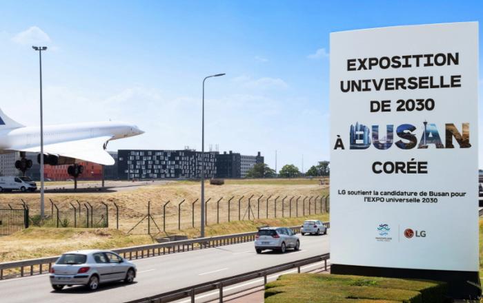 LG가 제172차 국제박람회기구(BIE) 총회가 열리는 프랑스 파리 곳곳에서 ‘2030 부산세계박람회’ 유치 지원에 나섰다. LG는 현지시간 15일부터 한 달간 파리 샤를드골 국제공항 인근의 대형 광고판에 ‘2030 부산세계박람회’ 유치를 응원하는 광고를