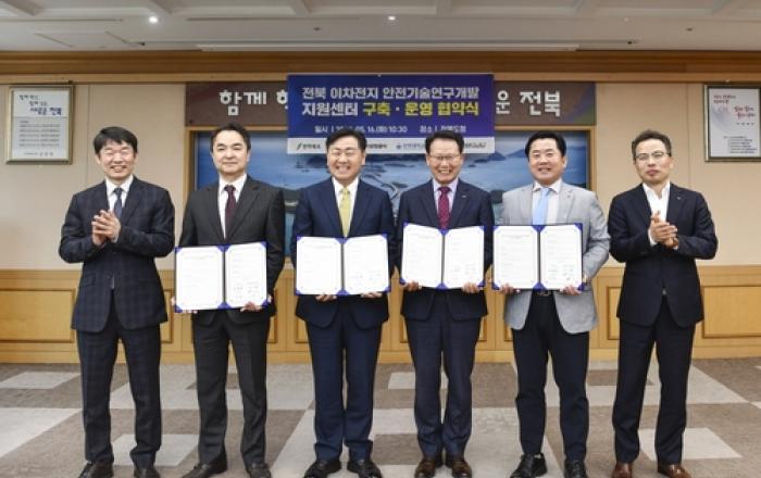 한국전기안전공사가 미래 신성장동력으로 평가받는 이차 전지 전주기 안전성 확보를 위해 전라북도·전북대학교·전북테크노파크와 손잡았다. '이차전지'란 전기차를 비롯한 스마트폰, 노트북 등 전자제품에 들어가는 장치로, 한번 쓰고 버리는 일반 건전지와 달리 충전을 통해 반영