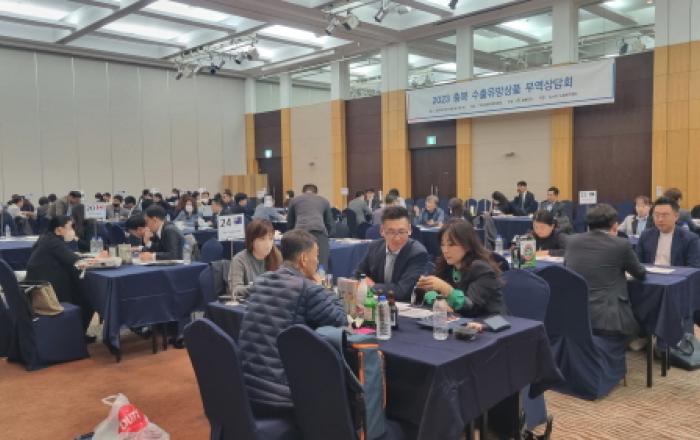 충북도와 KOTRA충북지원단은 지난 14일 그랜드플라자 청주호텔에서 도내 중소·중견기업과 해외바이어가 직접 만나는 '2023 충북 수출유망상품 종합무역상담회'를 개최했다. 이번 행사는 충북도에서 올해 첫 번째로 개최한 무역상담회로, KOTRA 해외무역관이 발굴해 초