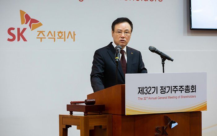 투자전문회사 SK㈜가 29일(수) 오전 9시 SK서린빌딩 수펙스홀(SUPEX Hall)에서 ‘제32기 정기주주총회’를 개최했다. 이 날 주주총회에서는 재무제표 승인, 사내이사 선임(장동현·이성형), 사외이사 및 감사위원 선임(박현주), 이사 보수한도 승인 등 5개