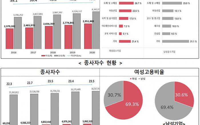 지난 2020년 기준 여성기업은 전체기업의 40.5%인 295곳, 종사자 수는 23.5%인 506만 명으로 매년 기업·종사자 수가 꾸준히 증가한 것으로 나타났다. 중소벤처기업부는 15일 이같은 내용이 담긴 ‘여성기업 현황 및 2022년 여성기업실태조사 결과’를 발표했다