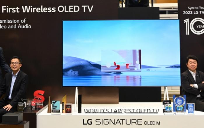 LG전자가 8일 LG전자 서초R&D캠퍼스에서 이달부터 출시하는 2023년형 LG TV 신제품 발표회를 진행했다. 이날 설명회에는 HE연구소장 정재철 전무, HE플랫폼사업담당 조병하 전무, HE상품기획담당 백선필 상무, 한국HE마케팅담당 김선형 상무