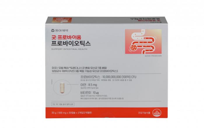 동아제약이 프리미엄 프로바이오틱스인 ‘굿프로바이옴’을 출시한다고 1일 밝혔다.이번에 출시한 굿프로바이옴은 장 건강과 면역 건강에 집중한 복합기능성 유산균 건강기능식품으로 유산균의 4세대로 구분되는 포스트바이오틱스다.포스트바이오틱스는 생균인 프로바이오틱스와 생균의 먹이인