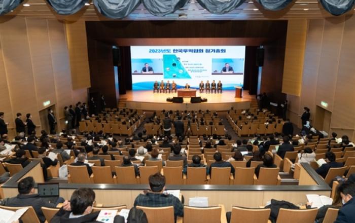 한국무역협회(KITA)는 22일 서울 삼성동 코엑스에서 '2023년 정기총회'를 개최했다. 무역협회 회원사 대표 600여 명이 참석한 이날 총회에서 협회는 올해 사업목표로 '무역 패러다임 전환을 위한 신 수출 동력 발굴'을 제시하고 최근 수출 부진을 극복하기 위한