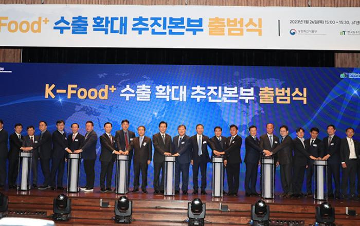정부가 오는 2027년까지 농산업 분야 수출액을 230억 달러로, 지금의 2배 수준으로 늘리겠다는 목표를 제시했다. 농림축산식품부는 23일 윤석열 대통령 주재로 열린 제4차 수출 전략회의에서 이 같은 내용의 ‘케이-푸드(K-Food)+ 수출 확대 전략’을 보고했다. 정