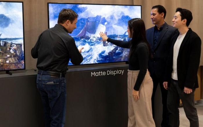 2월 23일(현지시간) 독일 프랑크푸르트에 위치한 삼성전자 독일법인에서 열린 ‘2023 유럽 테크세미나’ 참석자들이 삼성전자의 2023년형 Neo QLED 신제품을 살펴보고 있다.삼성전자가 23일과 24일(현지시간) 양일간 독일 프랑크푸르트에서 ‘2023 유럽 테크세미