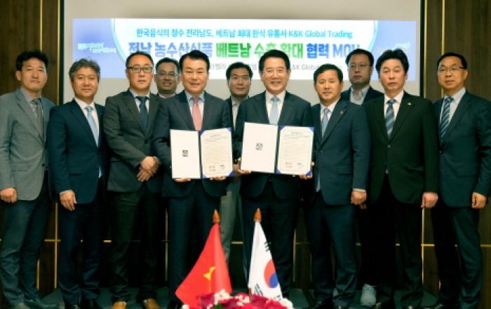 전라남도가 동남아시아 한국 농수산식품 최대 수입국인 베트남에서 전남 농수산식품 수출 전진기지를 구축하게 됐다. 베트남을 방문 중인 김영록 전라남도지사는 23일(현지 시각) 호치민 라벨라 사이공 호텔에서 한국식품 유통 전문기업으로 148개 매장을 갖춘 K&K 글로벌