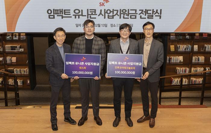 SK그룹은 임팩트 투자사와 엑셀러레이터 등 SK ‘임팩트 유니콘’ 프로그램 파트너사들이 추천한 소셜벤처 25개사를 △성장 가능성 △투자 의향 △SK 관계사 연계사업 개발 등 관점에서 종합심사해 넷스파와 인투코어테크놀로지 등 환경 소셜벤처 2개사를 유니콘 육성 대상으로