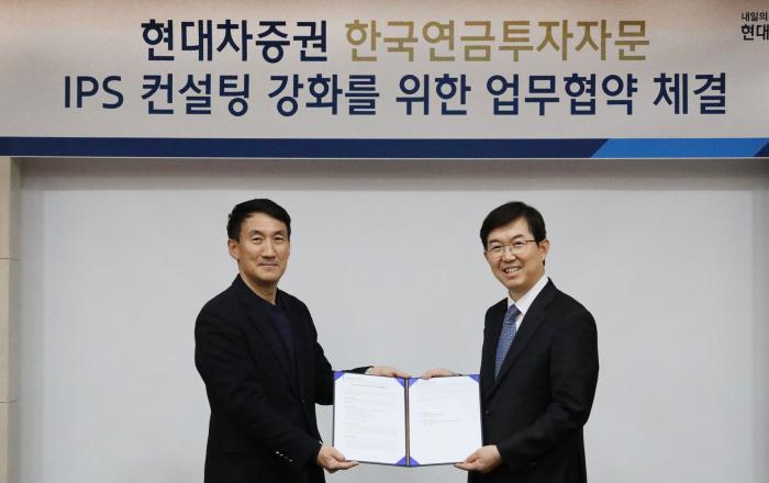 현대차증권이 DB형 퇴직연금의 자산운용 서비스 고도화를 본격 추진한다. 현대차증권(최병철 사장)은 16일 여의도 현대차증권 본사에서 한국연금투자자문과 IPS 컨설팅 자문을 위한 전략적 업무협약(MOU)을 체결했다고 17일 밝혔다.