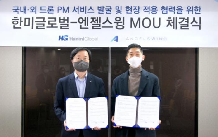 국내 1위 PM (Project Management, 건설사업관리) 전문 기업 한미글로벌이 드론 데이터를 활용한 PM 서비스를 개발하고 현장에 적용하기 위해 드론 데이터 플랫폼 기업인 엔젤스윙과 업무 협약(MOU)을 체결했다고 9일 밝혔다.엔젤스윙은 드론이나 무인 항공