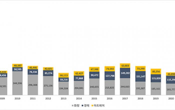 지난해 우리나라 미술시장이 코로나19와 세계 경제 위축에도 불구하고 역대 최초로 미술품 유통액 1조 377억 원을 달성한 것으로 나타났다. 문화체육관광부는 4일 예술경영지원센터와 함께 ‘2022년 미술시장 규모 추산 결과’를 발표하면서 지난해 미술시장은 2021년