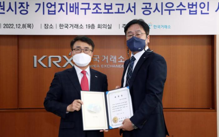 LIG넥스원이 서울시 영등포구 한국거래소 서울사옥에서 열린 ‘2022년 기업지배구조보고서 공시우수법인 시상식’에서 공시 우수법인으로 선정됐다고 12일 밝혔다.한국거래소는 2019년부터 2021년까지 자산총액 2조원 이상 코스피 상장 법인에 대해 기업지배구조 보고서공시를