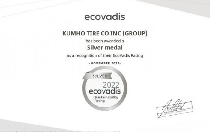 금호타이어가 글로벌 ESG 평가기관인 에코바디스(Ecovadis)와 한국ESG기준원(KCGS, 전 한국기업지배구조원)에서 각각 실버(Silver) 메달, 종합 B+ 등급을 획득해 2022년 대외 ESG평가에서 우수한 성적을 거뒀다.에코바디스는 프랑스에서 설립돼 전 세계