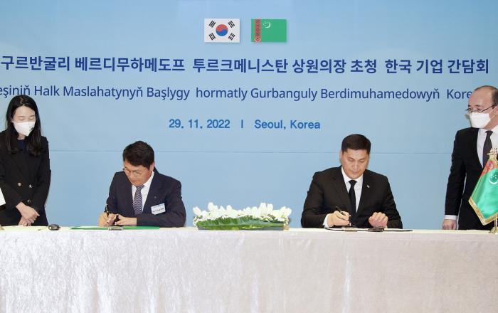 현대엔지니어링이 지난 29일(화) 개최된 ‘한-투르크메니스탄 기업 간담회’에서 발주처 투르크메니스탄 산업기업인연맹과 14억불 규모의 「투르크메니스탄 암모니아 요소비료 공장」 프로젝트에 대한 사업 협력 양해각서(MOU)를 체결했다.이날 소공동 롯데호텔에서 진행된 MOU