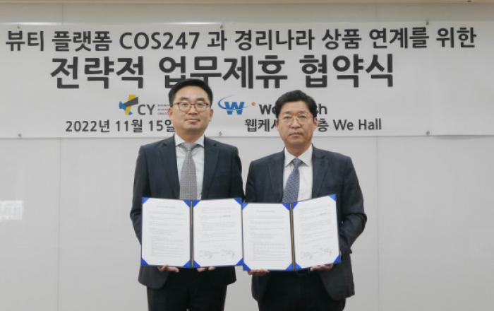 B2B 서비스형 소프트웨어(SaaS) 전문 기업 웹케시와 B2B 뷰티 플랫폼 ‘COS247’ 제공 기업 씨와이(대표 조명득)가 상품 연계를 위한 전략적 제휴를 맺고 상호 협력에 나선다.2016년 설립된 씨와이는 B2B 소프트웨어 및 플랫폼 비즈니스를 전개하며 기업의 디