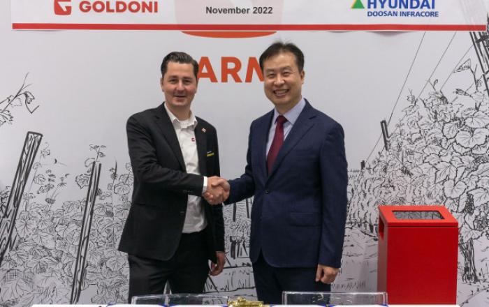 현대두산인프라코어가 이탈리아 농기계 제조사에서 엔진 8000여대를 수주했다. 현대두산인프라코어는 11월 9~13일 5일간 이탈리아 볼로냐에서 개최된 유럽 3대 농기계 전시회 ‘2022 에이마’(EIMA international 2022)에 참가, 이탈리아 골도니 키스트