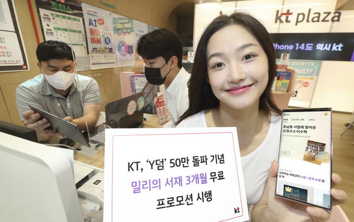 KT의 20대 전용 브랜드 와이(이하 Y)는 ‘Y덤’ 50만 가입자 돌파를 기념해 Y덤 신규 및 기존 가입 고객에게 국내 최대 독서 플랫폼 ‘밀리의 서재’ 3개월 무료 쿠폰을 제공하는 프로모션을 시행한다고 5일 밝혔다. Y덤은 KT 5G를 이용하는 20대 고객