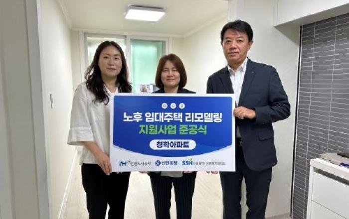 인천도시공사(iH)는 6일 「노후 임대주택 리모델링 사업」의 시범사업 준공식(2세대)을 연수구 청학동 소재 임대아파트(청학아파트)에서 개최했다고 밝혔다.지난 5월 신한은행 및 인천광역시사회복지협의회와 체결한 업무협약을 바탕으로 임대주택 입주민의 주거 만족도를 높이기 위